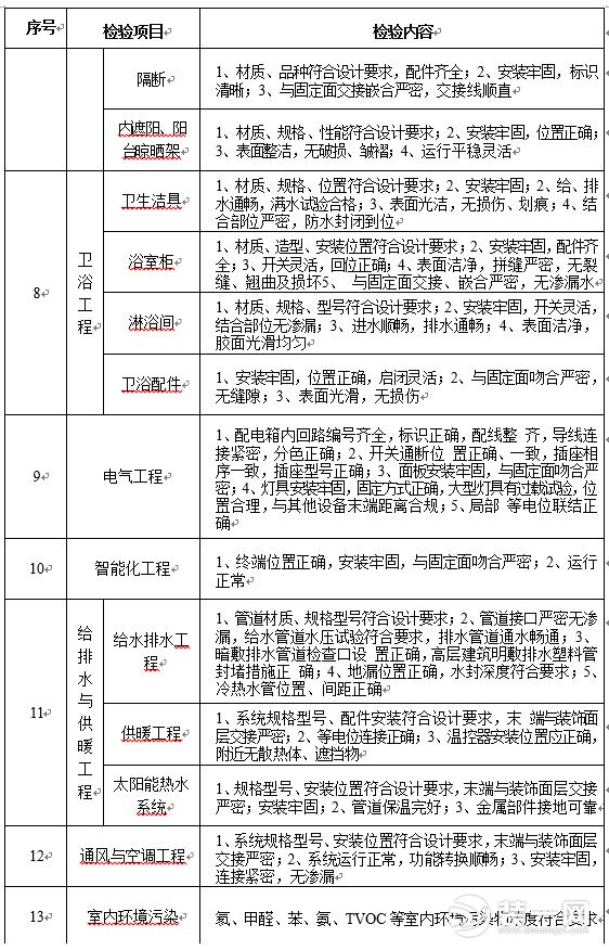 同時,《住宅項目規范》對房屋驗收交付給出了詳細的標準。如對放水工程要求,防水墻、地面無滲漏、無積水;抹灰頂面的要求則是,粘結牢固,無空鼓,表面平整、潔凈,無裂縫,無爆灰等等。
