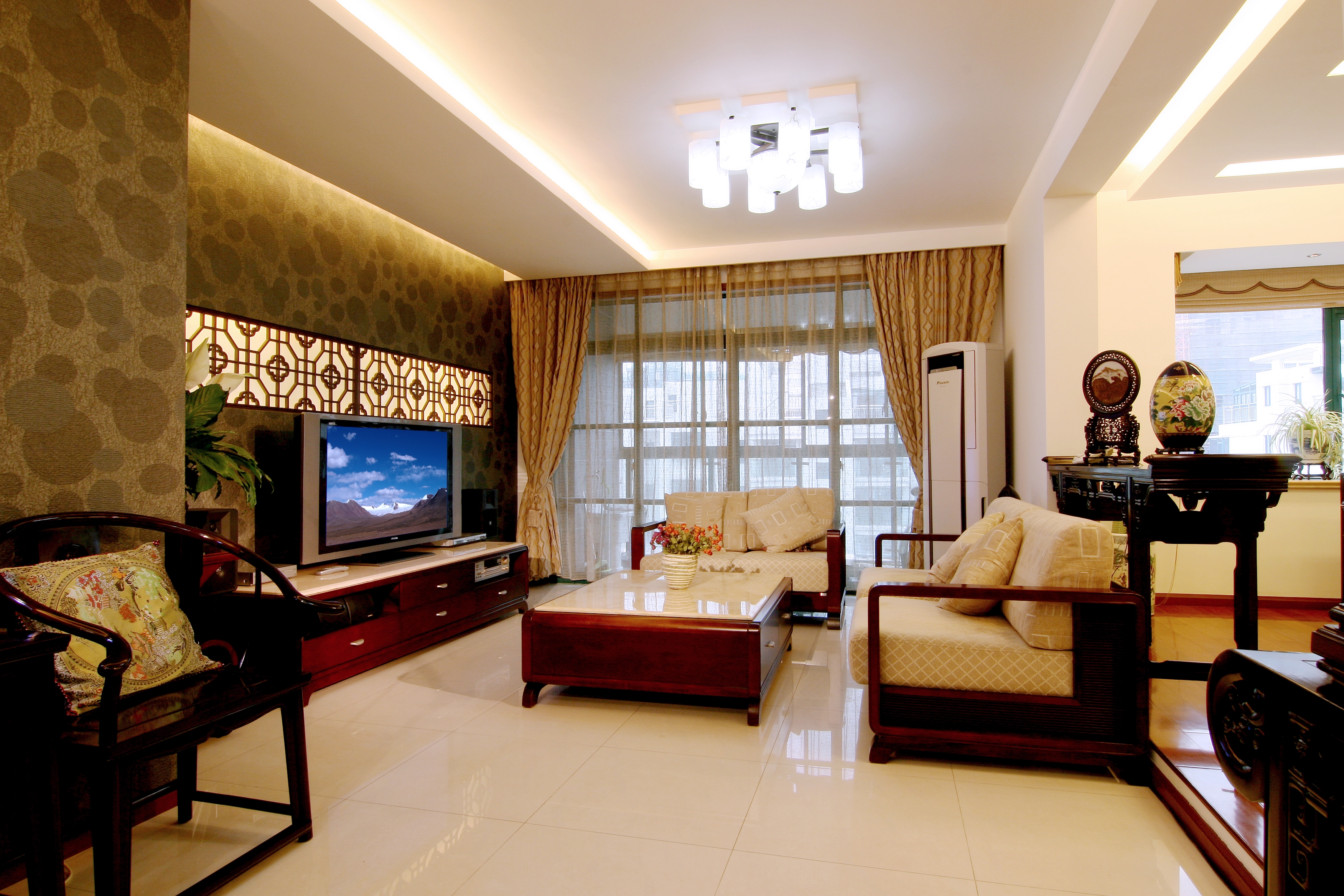 對稱是形式美的傳統技法,是人類比較早掌握的形式美法則。對稱又分為對稱和相對對稱。上下、左右對稱,同形、同色。而在室內設計中采用的是相對對稱。對稱給人感受秩序、莊重、整齊即和諧之美。