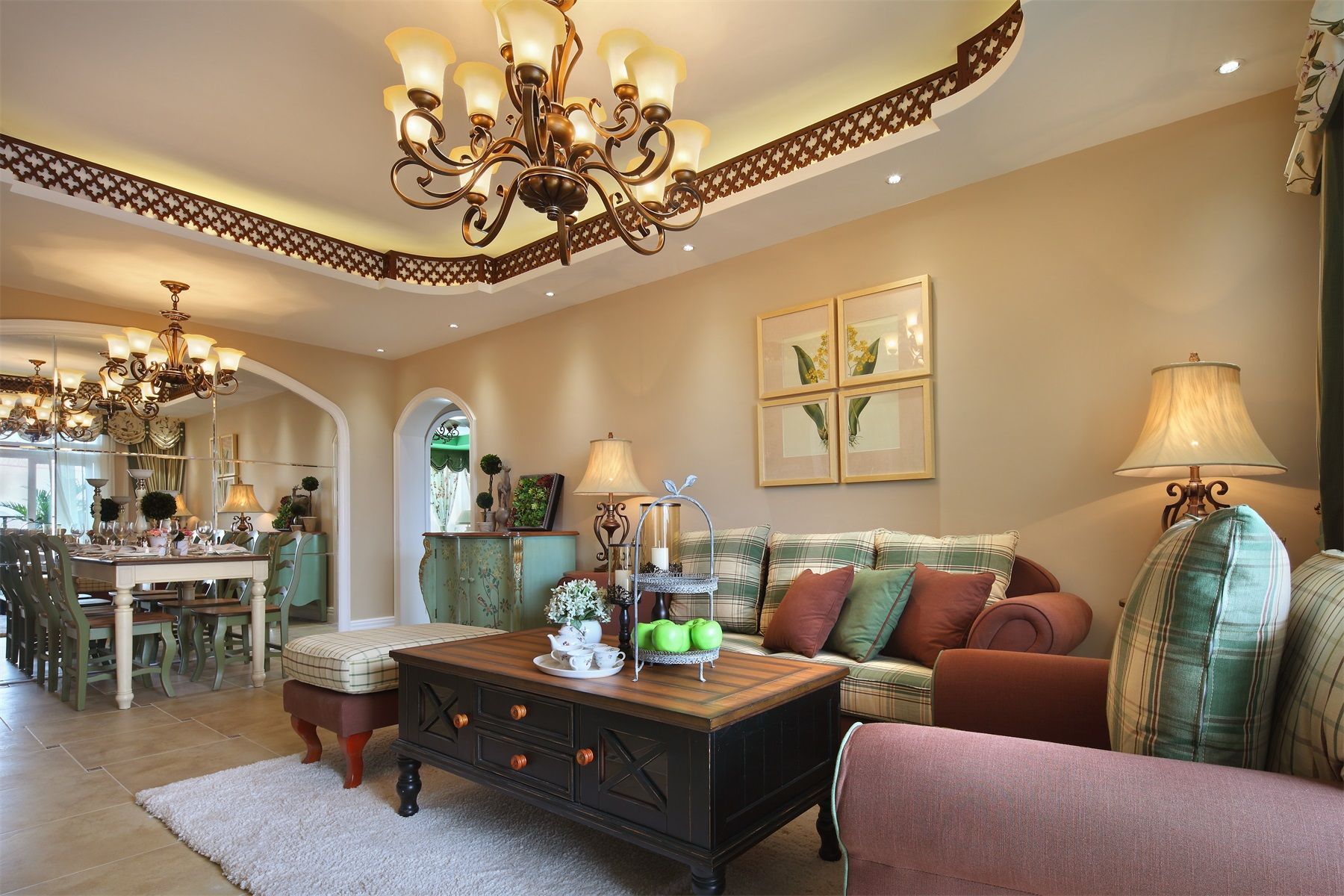 客廳是家居中比較主要的公共活動空間,不管是否做人工吊頂,都必須確??臻g的高度,這個高度是指客廳應是家居中空間凈高較大者(樓梯間除外)。這種較高化包括使用各種視錯覺處理